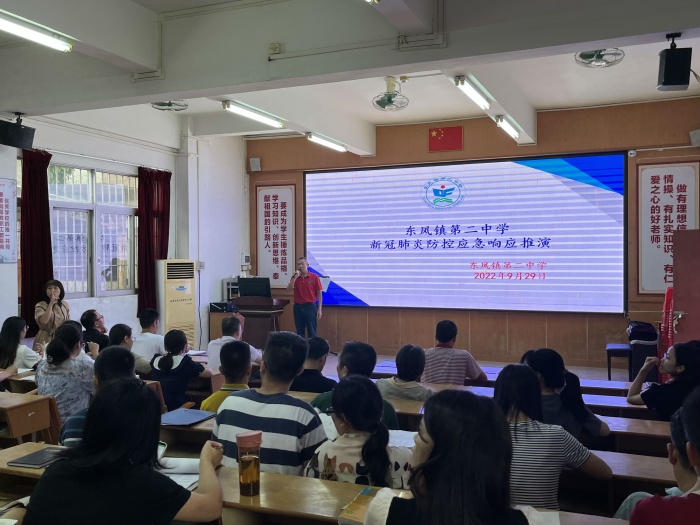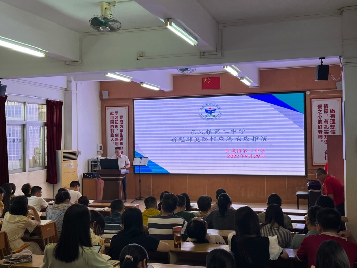 為了做好國慶放假前安全教育,貫徹落實上級部門關于國慶節(jié)假期期間的疫情防控工作部署,做到科學防控,守護校園安全防線,9月29日下午,中山市東鳳鎮(zhèn)第二中學在學校階梯室開展了節(jié)前新冠肺炎疫情師生應急響應處置演練活動。全體教職員工參會,學校衛(wèi)生健康副校長梁景榮進行防疫安全主題培訓。