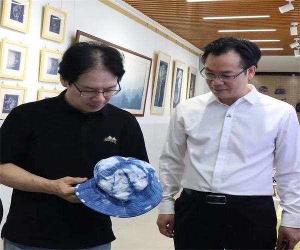 沈文老師一行首先來到非遺民族技藝展示館,欣賞了孩子們創(chuàng)作的一幅幅精美的扎染創(chuàng)意美術(shù)作品。接著課題主持人吳連娟老師向?qū)<覀儏R報(bào)中期研究成果,分別從課題簡介、課題研究目標(biāo)、階段研究內(nèi)容、主要研究進(jìn)展、階段研究成果和效果、主要?jiǎng)?chuàng)新點(diǎn)、存在的問題、下階段研究計(jì)劃等方面進(jìn)行匯報(bào)。專家們認(rèn)真聽取了中期報(bào)告,查閱了課題相關(guān)資料,肯定了課題組工作扎實(shí)、研究方向明確、思路清晰。