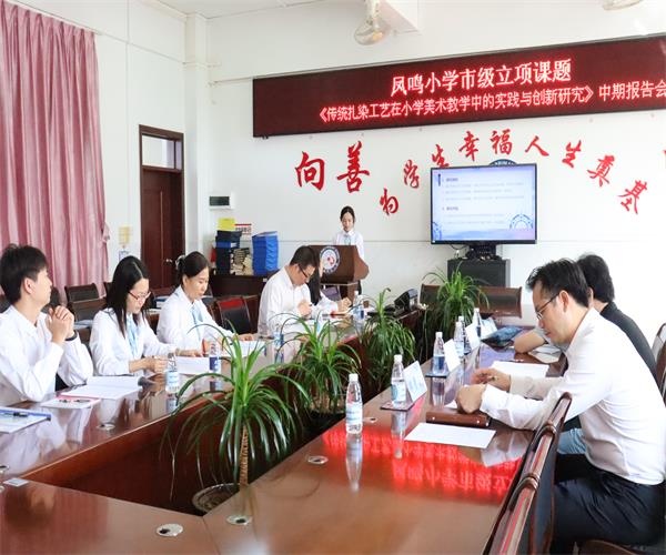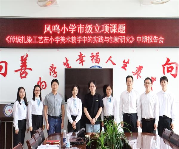 12月7日上午,東鳳鎮(zhèn)鳳鳴小學(xué)舉行了中山市教育科研2020年度青年課題《傳統(tǒng)扎染工藝在小學(xué)美術(shù)教學(xué)中的實(shí)踐與創(chuàng)新研究》課題研究的中期匯報(bào)會(huì)。本次會(huì)議邀請了中山市教育教學(xué)研究室美術(shù)教研員沈文老師、東鳳鎮(zhèn)教育和體育事務(wù)中心藝術(shù)專干鄒營發(fā)老師、東鳳鎮(zhèn)教育和體育事務(wù)中心陳林方老師蒞臨指導(dǎo),劉松校長、莊惠茜副校長以及課題組全體成員參會(huì)。