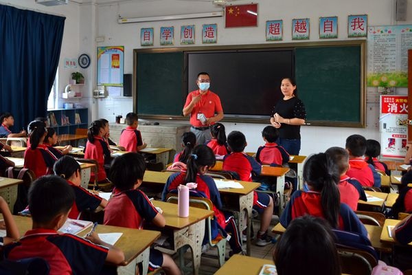 在學(xué)校黨支部書(shū)記梁桂浩、歐見(jiàn)標(biāo)主任和付巍副主任的陪同下,胡督學(xué)先后視察了吉昌小學(xué)新建教學(xué)樓、學(xué)生課堂上課、教師辦公、校園安全等方面的情況,并著重檢查了“雙減”和“五項(xiàng)管理”的落實(shí)情況。