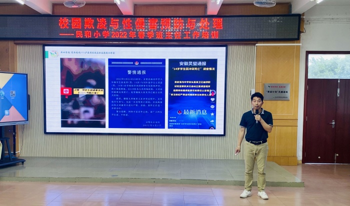 為了杜絕校園欺凌事件的發(fā)生,民和小學舉行“預(yù)防校園欺凌”“預(yù)防性侵”工作培訓(xùn)。會上,黃逵明校長列舉了校園欺凌事件產(chǎn)生的嚴重后果,防范校園欺凌采取的具體措施。針對本學期的安全工作,要求全體教師要深入學生的學習和生活,加強與學生的溝通與交流,要重視周圍的校園欺凌苗頭性傾向,更要全力做好校園欺凌的預(yù)防和治理工作,確保全校師生同心協(xié)力,共同抵制校園欺凌。