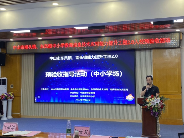在信息化2.0的背景下,學校要主動對接時代需求,落實“雙減”政策,促進信息技術與教育教學的全面深度融合,為教師的信息化素養賦能。9月23日上午,中山市信息技術提升工程2.0研訓專家們蒞臨民和小學進行驗收指導工作。出席本次活動的嘉賓有南頭鎮教育和體育事務中心教研員李劍輝老師、橫欄鎮教育和體育事務中心教科研專干王春明老師、東鳳鎮教育和體育事務中心政工員鄒營發老師、小欖鎮升平小學教導處何敏添主任以及各兄弟學校老師等。會議由中國教師研修網廣東服務中心李智欣老師主持。