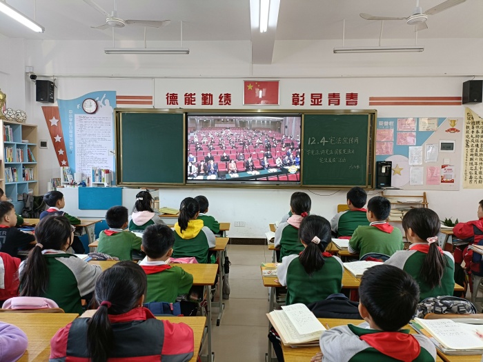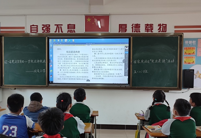 12月4日是第八個國家憲法日,深入貫徹落實黨的十九大和十九屆六中全會精神,認真學習習近平總書記關于全面依法治國的重要論述,激發全校師生學習宣傳憲法的熱情,12月3日,東鳳鎮同安小學開展了“憲法宣傳日”學習活動。