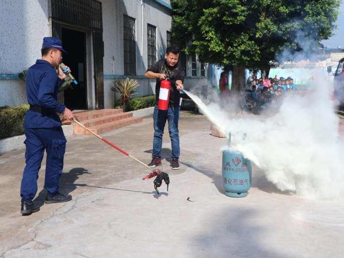 隨后,東鳳鎮消防大隊指導員給全校師生講解了生活中煤氣、家用電器插座的安全使用以及注意事項等常見安全隱患及防范措施。接著給全校師生講解干粉滅火器的使用方法,以及如何利用滅火器撲滅初起火災。教師和學生代表也利用滅火器進行了實戰滅火。