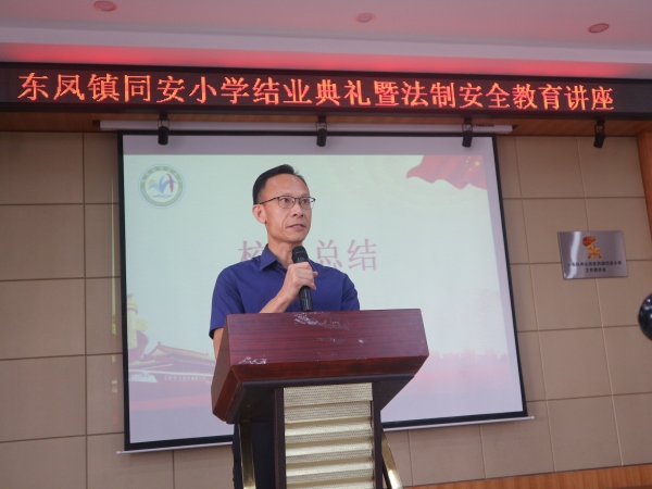 接著,由同安小學(xué)羅權(quán)鎏校長(zhǎng)進(jìn)行學(xué)期工作總結(jié)。羅校長(zhǎng)回顧了一學(xué)期的教育教學(xué)工作,總結(jié)了本學(xué)期學(xué)校師生取得的榮譽(yù)和成績(jī),對(duì)師生們默默耕耘、辛勤付出給予了充分的肯定。同時(shí),羅校長(zhǎng)也對(duì)今后的學(xué)習(xí)和工作提出殷切的希望,對(duì)學(xué)生的假期生活提出如下要求:合理安排時(shí)間、倡導(dǎo)精神文明、關(guān)注時(shí)事形式、增進(jìn)親子交流、堅(jiān)持身體鍛煉、加強(qiáng)自我保護(hù),衷心希望學(xué)生安全每一天,快樂過暑假。