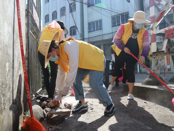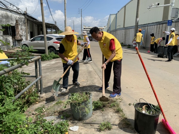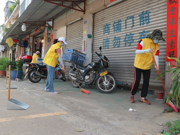 教師們身穿“黃馬甲”,手拿掃把、垃圾桶等工具,冒著炎炎烈日,開啟了志愿活動。一隊教師佩戴工作證,入戶宣傳,發動群眾自行清理房前屋后雜物,協助群眾做好清潔工作。二隊教師按區域分工,有順序有組織地清潔校園及校園周邊兩百米范圍的環境。教師們分工合作,重點清理了紙屑、飲料瓶、塑料袋等垃圾和廢棄物,對周邊的雜草進行拔除清理,教師所到之處,大大小小的垃圾無一遺漏。