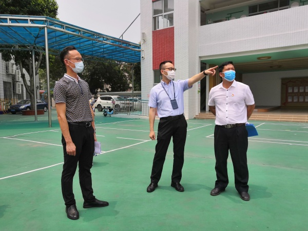 中山市第三批學(xué)生復(fù)學(xué)在即,為全面保障全體師生健康,安全有序地迎接學(xué)生返校復(fù)課開(kāi)學(xué)工作,2020年5月13日上午,東鳳鎮(zhèn)紀(jì)委副書(shū)記、監(jiān)察室主任黎慶恩一行到同安小學(xué),對(duì)疫情防控和返校復(fù)學(xué)準(zhǔn)備工作做督導(dǎo)檢查,羅權(quán)鎏校長(zhǎng)、黃炎有副校長(zhǎng)等學(xué)校行政全程陪同。