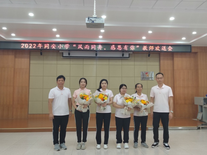 會(huì)議最后,學(xué)校為即將離開(kāi)同安小學(xué)的梁毓楨老師、文清怡老師、余淑瑩老師、唐順興老師舉行了一個(gè)小小的歡送會(huì),希望幾位老師在新的工作崗位再創(chuàng)輝煌。