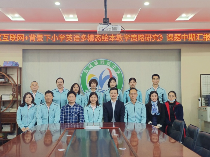 為深入落實教科研工作,確保課題研究的實效性,發揮課題研究中期匯報回顧、調整、提升的功能,促進課題研究的穩步推進,12月2日下午,中山市教研室小學英語教研員辛鍵、東鳳鎮教育和體育事務中心教研員陳林方、梁慧、陳水玲老師蒞臨中山市東鳳鎮同安小學進行教育科研課題《互聯網+背景下小學英語多模態繪本教學策略研究》中期檢查與指導,并對同安小學教科研工作提出意見和建議。同安小學羅權鎏校長、黃炎有副校長、劉結芳主任、阮麗霞主任、課題負責人黎彩霞老師及課題組全體成員參會。會議由林妙麗老師主持。