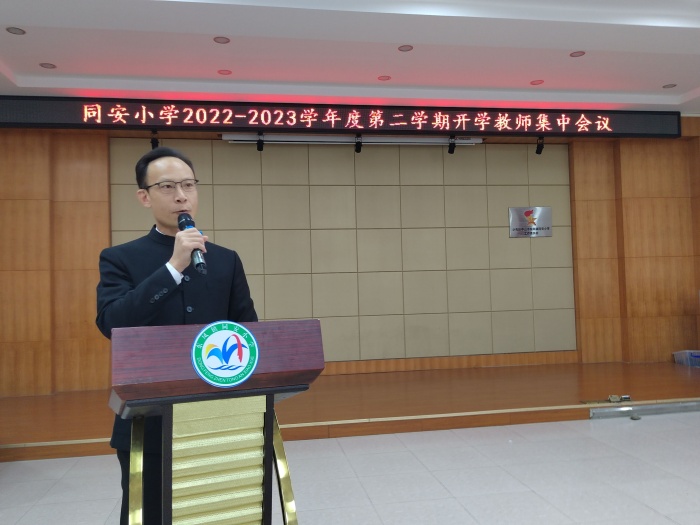 本次會議由同安小學劉結芳主任主持。首先,同安小學羅權鎏校長代表學校向全體教職工表達了春節的問候和祝福,對在漫長假期中默默堅守、無私奉獻的老師們表示了衷心的感謝!接著,他明確了本學期的教育教學工作思路,提出了“五個希望”,希望老師們在新的學期能成為一名富有涵養的老師、充滿愛心的老師、責任心的老師、心胸闊達的老師以及善于管理的老師,同時,也傳達了東鳳鎮校長會議精神,勉勵全體教師在新的學期要認真履行自己的崗位職責,全心全意提高教育質量,爭辦讓生命出彩的教育。