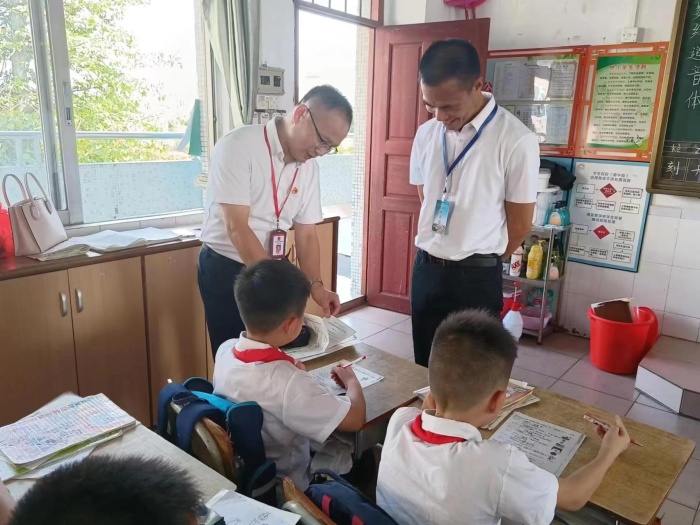 接著賴老師認真聽取了小瀝小學高強輝校長關于小瀝小學本學期“雙減”工作的落實情況報告。他對學校各項管理工作給予充分肯定,認為學校在推進“雙減”工作中政治站位高、舉措到位、成效顯著且有創新意識,教學常規落實到位,作業管控科學規范,“五項”管理落到實處,校園安全防線細密,制度方案落實到位。希望學校堅定不移貫徹落實好黨中央關于“雙減”工作的決策部署,要把牢關鍵,凝聚學校、社會、家庭各方力量,有序推進,夯實學校主陣地作用,不斷優化學校管理水平,提升課堂教學質量,提高課后服務水平,辦好讓社會放心、家長安心、學生舒心的教育。