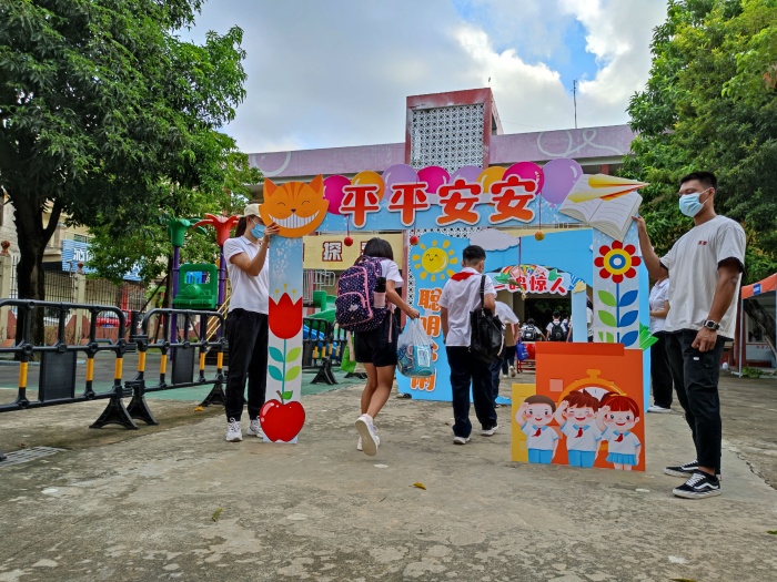 沐浴晨光,充滿了新學年的希望;再起秋風,吹拂著跳動的心房。9月1日上午,中山市東鳳鎮小瀝小學全體師生滿懷著新的希望,新的期盼,迎來了2021年秋季開學。一大早校園就熱鬧了起來,同學們迎著朝陽,興高采烈地來到了久違的校園,在校門口檢測體溫后滿懷驚喜地通過老師們精心為他們準備的幸福門,寓意著他們在新的學期里平平安安,聰明伶俐,一鳴驚人!