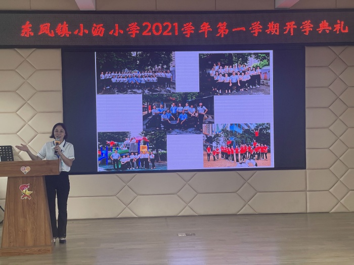 接下來,藍桂珊副校長作新學期致辭,她鼓勵同學們像奧運健兒一樣,自立自強,不負年少。希望全體師生做到:1.我在這里,有我有責。2.與你一起,群我群力。3.向陽而生,強我強校。最后,她把學校對同學們的愛和祝福送給同學們:平平安安、聰明伶俐、一鳴驚人!