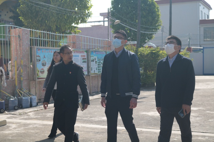 2月25日上午,東鳳鎮黨委委員冼嘉濤、東鳳鎮教體文旅局局長吳宏安到西罟小學開展調研工作,東鳳鎮西罟步村書記張桂南陪同。冼委員和吳局長在崔杰文校長和學校行政的陪同下認真視察校園,視察室場以及校園文化建設,全面了解學校的疫情防控、校園管理以及教育教學、未來發展愿景等。冼委員高度肯定了學校在疫情防控、校園文化方面的工作開展得扎實落細,為全體師生平安健康保駕護航。