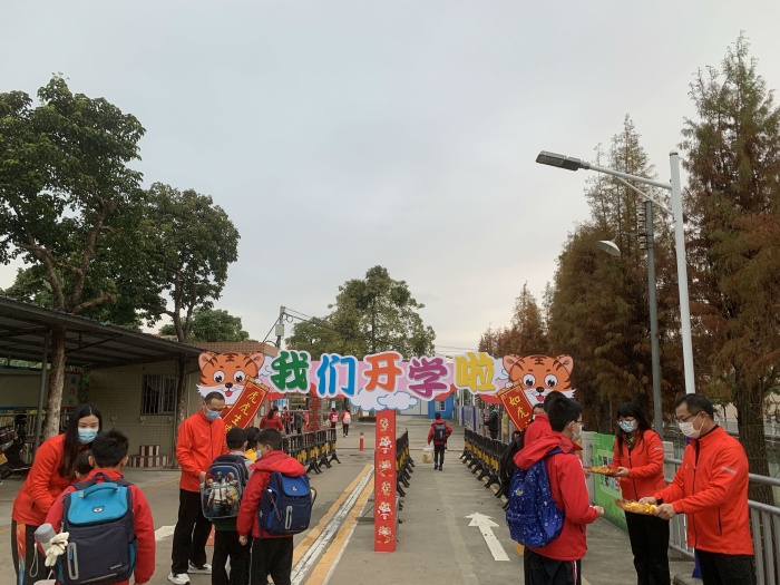 新的學期,開啟新的希望;新的學期,共筑新的夢想。進入校園,映入眼簾的是老師們和同學們熱情洋溢的笑臉。老師們手捧著“冠軍勛章”巧克力還有“棒棒糖”站在校門前迎接返校的同學們,親手送出他們的祝福和期望。同時,老師們引導同學們穿過迎新拱門到心愿墻前,認真寫下自己新學期愿望。