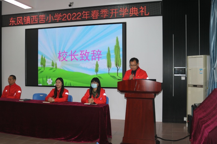 上午八點半,開學典禮在莊嚴的國歌聲中拉開了序幕,在朝陽的映照下,五星紅旗在嘹亮而雄壯的國歌聲中冉冉上升。同學們以最美的隊禮向國旗致敬,用最挺拔的身姿自信地迎接新的學期。