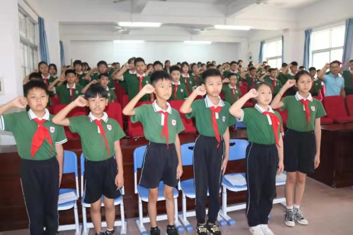 接著,中山市優(yōu)秀班主任鐘亮老師作為教師代表激情演講,他表達(dá)了自己將繼續(xù)全心全意為學(xué)生服務(wù),恪守師德,不負(fù)韶華的決心。隨后學(xué)生代表李妍姍發(fā)言。雖然語言稚嫩,但“樹立遠(yuǎn)大目標(biāo),不負(fù)青春,做好時(shí)代接班人”的理想?yún)s一覽無余。然后,學(xué)校法制副校長盧日江以“安全無憂,快樂成長”為主題給大家上了一堂生動(dòng)的安全法制課。最后同學(xué)們莊嚴(yán)宣誓,“請黨放心 強(qiáng)國有我”,洪亮的聲音響徹校園。