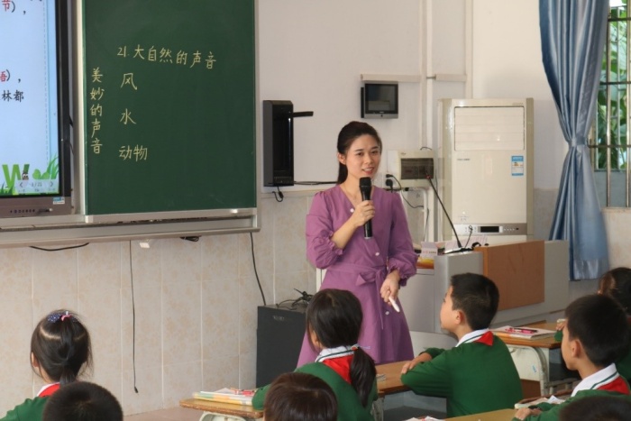 接著,章曉珊老師為我們帶來一節精彩紛呈的課堂——《大自然的聲音》。章老師牢牢把握課文的語文要素,層層深入,引導學生感受大自然的聲音,注重讀寫結合。