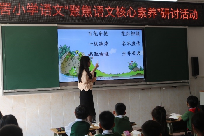 首先由張文娜老師執教《坐井觀天》。課堂上,張老師通過展示圖片、聯系生活實際,有效引導學生領悟生字詞的音形義。