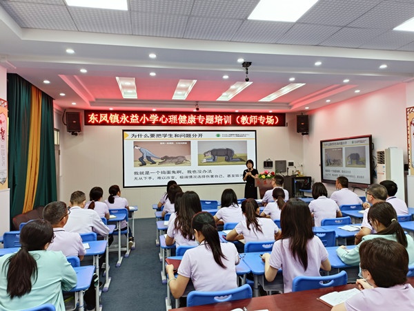 為提升學(xué)校全體教師心理健康核心素養(yǎng)和指導(dǎo)能力,2022年5月25日下午,永益小學(xué)在階梯室舉行主題為“如何與學(xué)生談話,提高教育效果”的教師心理健康專題培訓(xùn)。本次專題講座由中山市第三人民醫(yī)院的心理治療師曾海萍主講。