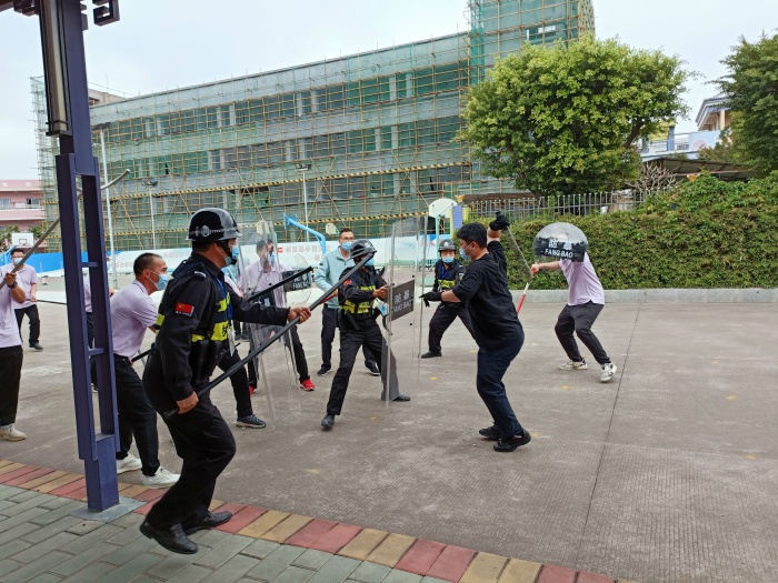 這次防暴演練活動,不僅考驗了保安的警惕性,同時使教職員工對防恐防暴事件的應急程序和器材的使用方法有了更深刻的認識,增強了全體師生的安全意識和防暴意識,提高了師生在緊急情況下的快速反應能力,掌握了險情發生后的逃生自救能力,進一步確保了學校的安全和諧穩定,為校園安全保駕護航。
