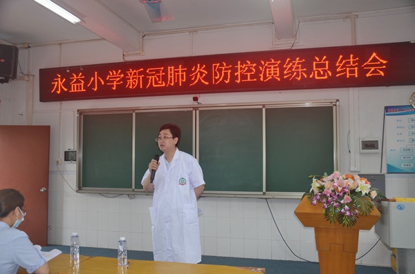 演練結(jié)束后,全體教師與領(lǐng)導(dǎo)均集中階梯室進(jìn)行簡(jiǎn)短的總結(jié)會(huì)。會(huì)上,鎮(zhèn)教辦吳正輝教研員、賴(lài)醫(yī)生、卜醫(yī)生在肯定永益小學(xué)防疫應(yīng)急演練工作的同時(shí),針對(duì)一些處置細(xì)節(jié),提出了更專(zhuān)業(yè)的、更精細(xì)的指導(dǎo)意見(jiàn)。教師們認(rèn)真聽(tīng)講,并紛紛在筆記本上認(rèn)真記錄。