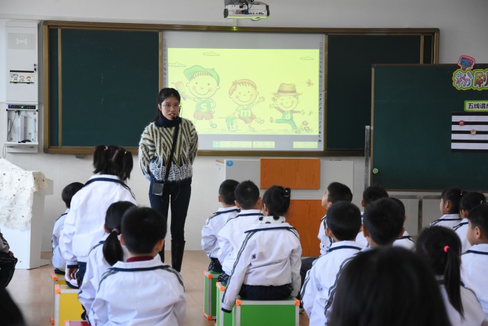 此次活動在觀摩課例中拉開序幕。孫美婷老師為全體老師展示了人民音樂出版社一年級下冊第七課歌曲《粉刷匠》一課。孫老師結合柯達伊音樂教學法,讓學生初步認識五線譜并認知s-m-d三音在五線譜中的位置,并能用準確的聲音學會歌曲。課堂上充分應用了信息技術希沃白板融合教學,鼓勵學生積極動手探究,培養學生的音樂素養。
