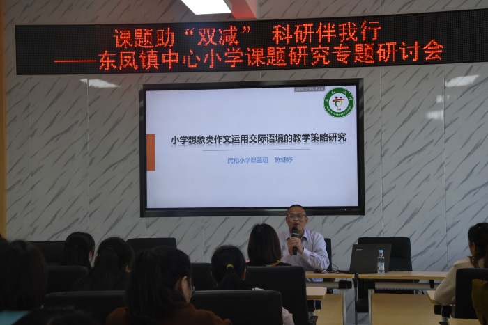 活動(dòng)分為二大環(huán)節(jié)。第一環(huán)節(jié)是東鳳鎮(zhèn)中心小學(xué)語文科組的4項(xiàng)立課題和民和小學(xué)語文科組的立項(xiàng)課題進(jìn)行課題研究交流分享,經(jīng)過交流,大家一致認(rèn)為課題研究要注重“學(xué)”,堅(jiān)持“寫”,突出“新”,追求“實(shí)”。
