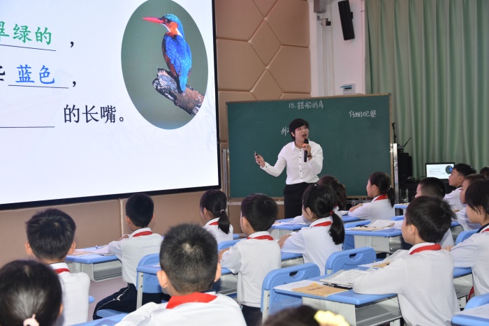 活動分為三大環節,第一環節是課例展示。由東鳳鎮中心小學陳碧娟老師帶來三年級上冊課例《搭船的鳥》。陳老師先引導學生整體把握課文內容,學生通過多層次的朗讀、交流,清楚地知道了作者對雨點、船夫、翠鳥外形、翠鳥捕魚等作了細致的觀察。然后通過抓翠鳥捕魚的動詞,想象翠鳥捕魚的情景,突破了本節課的學習重難點。最后結合課外觀察實踐活動,讓學生觀察我們常見的小動物,記錄觀察所得,為單元習作做準備。