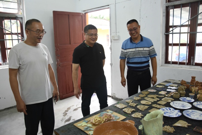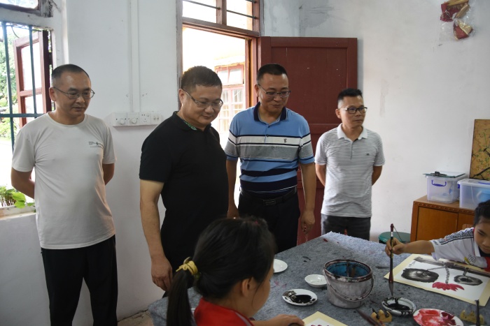 駱培華、李軍在胡小明校長(zhǎng)等行政的陪同下,參觀了書(shū)法、水墨、陶藝等藝術(shù)社團(tuán)的活動(dòng)現(xiàn)場(chǎng),胡小明向兩位主席詳細(xì)介紹了學(xué)校藝術(shù)社團(tuán)的人員配備、訓(xùn)練情況等,并對(duì)學(xué)校的發(fā)展規(guī)劃作了詳細(xì)的介紹。駱培華對(duì)學(xué)校藝術(shù)社團(tuán)的管理和多年來(lái)取得的藝術(shù)成果給予了充分的肯定,并對(duì)學(xué)校今后各項(xiàng)工作的開(kāi)展提出四點(diǎn)建議:一是要在現(xiàn)有藝術(shù)成果的基礎(chǔ)上總結(jié)經(jīng)驗(yàn),尋求更大突破。二是要繼續(xù)加強(qiáng)藝術(shù)教育在人才培養(yǎng)中的作用。三是要加強(qiáng)師資隊(duì)伍的建設(shè),搭建教師發(fā)展平臺(tái)。四是要按照學(xué)校的要求進(jìn)一步規(guī)范部門(mén)管理,建章立制。最后,專家們與藝術(shù)科的教師進(jìn)行了互動(dòng)交流,重點(diǎn)交流了書(shū)法藝術(shù)的心得,分享了多年的創(chuàng)作歷程,讓東鳳鎮(zhèn)中心小學(xué)的藝術(shù)老師受益匪淺。