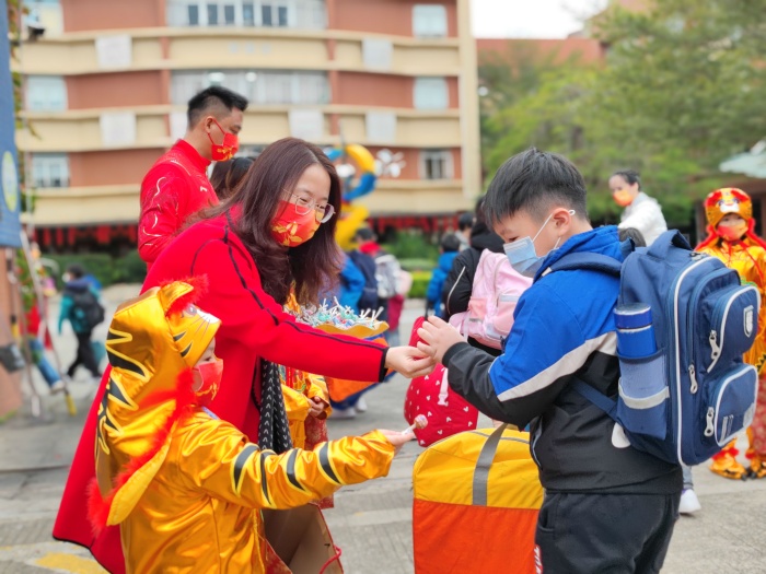 校長和老師們還為每名進校學生派發棒棒糖,寓意新的一年身體棒棒、心情棒棒、學業棒棒!