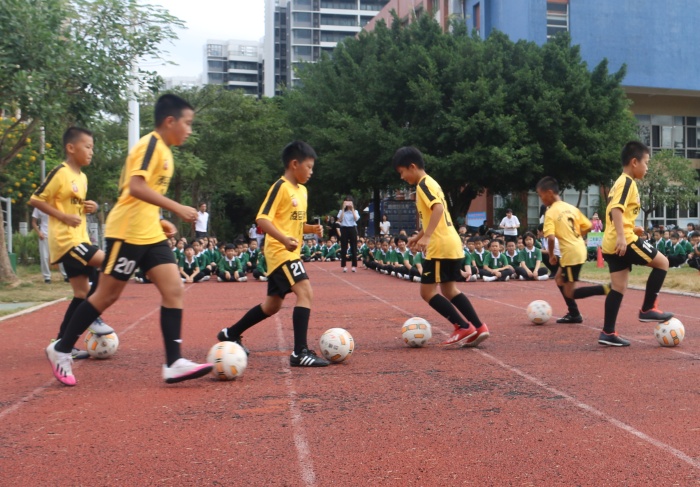 朗晴小學全面深化體育教學改革,一年一度的運動會,既是朗晴學子展示良好精神風貌的機會,更是錘煉優秀品格的平臺,已成為學校普及體育運動、共享體育成果、發掘體育真諦的有效載體。多年來,朗晴小學把學生的健康權、運動權放在首位,既不以應試作為唯一標準,也不以素質教育當無作為的掩護,持續推進體育“5+1”課程,即小學期間掌握5個必修技能(形體、田徑、定向越野、籃球、足球)和1個輔修技能(圍棋、羽毛球、游泳、攀爬、花樣跳繩其中之一),學校體育文化濃厚,學生身體素質優良。