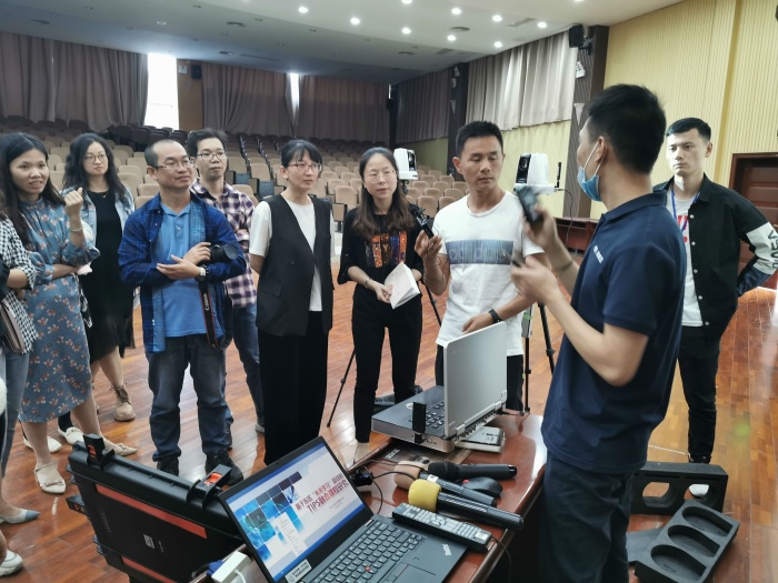 會議的第二項議程是學習朗言廳錄播系統操作方法。科組長們認真觀摩工作人員示范,嘗試進行操作,細心聽取答疑解惑,對錄播系統的強大功能表示贊賞和期待。