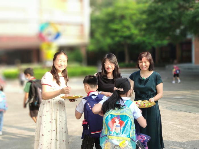 9月1日,東區(qū)朗晴小學(xué)一派喜氣洋洋,校門口熊貓和小丑歡快地迎接師生返校。鄭鳳姚校長帶領(lǐng)全體行政為孩子們派發(fā)棒棒糖,寓意新學(xué)期“學(xué)習(xí)棒、生活棒、身體棒!”值日教師、保安、家長志愿者、輔警、民警等在校門口精心維持秩序,為學(xué)生保駕護(hù)航。