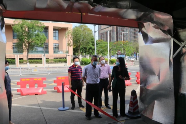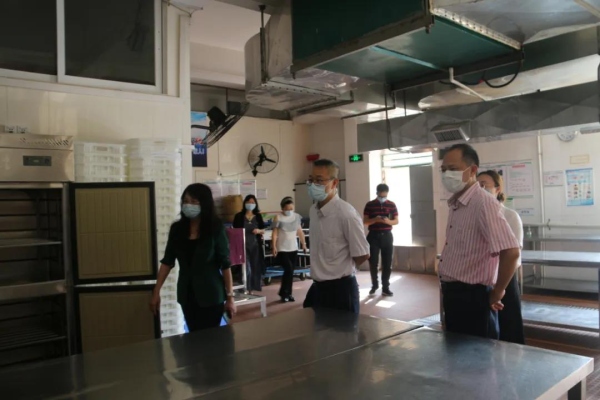 郭衛華主任一行按照“高”、“準”、“深”、“實”的標準和要求,深入教室、飯堂、臨時健康觀察室、校醫室、臨時監測點等重點區域檢查防控措施落實情況,仔細核查學校疫情防控工作相關制度、疫情應急處置流程、防控知識宣傳、學生復課方案等資料,并實地察看醫務室和防疫物資儲備情況,聽取線上教育等情況介紹,認真分析研判,對該校創新舉措、采取務實有效辦法做好復學準備工作給予充分肯定。同時,郭主任一行對校門左側建筑紅線區改造成放學接送區表示大力支持。