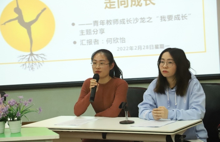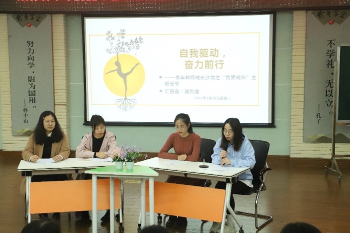 活動第二環(huán)節(jié)是由周詩瑩、何欣怡、王澤歆和莫凱煌四位青年教師代表分享自己工作以來的收獲與感悟。周詩瑩老師分享的主題是:真抓實干出成效,她從班干部的培養(yǎng)、言傳身教這兩個方面講述了自己兼任班主任和語文老師所積累的經(jīng)驗。她把“認(rèn)真”作為自己的工作準(zhǔn)則,每天利用課余時間輔導(dǎo)學(xué)生,鉆研教材,而這一切默默付出的努力成為了她迅速成長的催化劑。何欣怡老師圍繞“反思與學(xué)習(xí)”進(jìn)行分享,她把自身作為新教師在工作中出現(xiàn)各種問題進(jìn)行了深入剖析和反思,并在許多經(jīng)驗豐富的老師們溫暖的鼓舞下,她發(fā)現(xiàn)自己重新?lián)碛辛嗽诮虒W(xué)中展現(xiàn)自我的勇氣,終于在一次次成功的課堂教學(xué)中得以蛻變。王澤歆老師結(jié)合自己從教多年的寶貴經(jīng)歷中提出了“積極主動是促進(jìn)教師專業(yè)成長的利器”的觀點,作為一名合格的教師,教齡有多長不是衡量專業(yè)能力的標(biāo)準(zhǔn),只有扎實的基本功和持續(xù)性地學(xué)習(xí),才能豐富自身。莫凱煌老師分別從學(xué)會自主、培養(yǎng)自信和他人的鼓勵這三個方面講述了她教學(xué)中遇到的難題與收獲的成果,一步一個腳印,相信努力,不害怕失敗,是她得到大家認(rèn)可的鑰匙。在如此溫馨的分享交流中,在場的老師們認(rèn)真聆聽,受益匪淺。