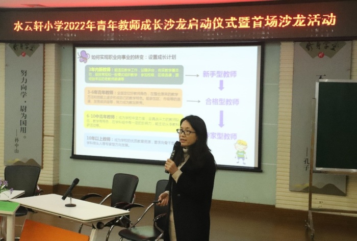 為了給青年教師成長搭建學(xué)習(xí)、交流及展示的平臺,共享彼此成長過程中的實踐經(jīng)驗和理論思考,推動青年教師對職業(yè)責(zé)任感的認(rèn)同以及自我發(fā)展空間的突破,讓更多的青年教師脫穎而出,2月28日下午,東區(qū)水云軒小學(xué)在多媒體室開展以“向上生長,向下扎根”為主題的青年教師成長沙龍啟動儀式暨首場沙龍活動。
