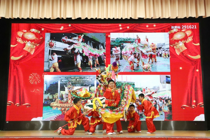 接著軒小的“起灣金龍”舞龍舞獅隊為師生們帶來節(jié)目《金龍舞動迎新春》。