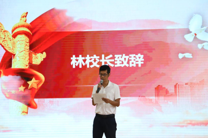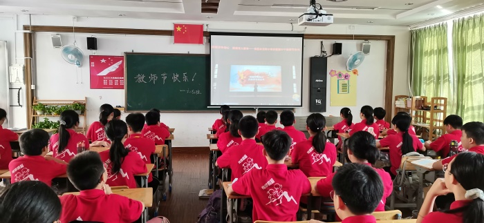 為創(chuàng)建綠色低碳校園,樹立廉潔節(jié)儉風氣,活動開始,吳依聰同學宣讀倡議書,倡議家長和學生在這個美好的節(jié)日里,用最樸實最真摯的話語對老師致以謝意,營造尊師重教好風尚。接著是由朱恩澄、李霈然兩位同學朗誦由水云軒小學莫凱煌老師創(chuàng)作的獻給老師們的詩歌,他們用極具感染力的聲音或深情或激昂表達對老師的尊敬和愛戴。最后由東區(qū)水云軒小學黨支部書記、校長林小舟致辭,林校長先對每日辛勤工作的全體老師送上真摯的祝福, 并教導(dǎo)孩子們能承載和傳達師生情誼的方式有很多,從細節(jié)做起,表達感恩之情。