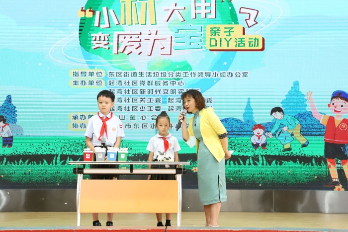 最后,為進(jìn)一步激發(fā)學(xué)生的創(chuàng)作熱情,宣傳節(jié)約資源、保護(hù)環(huán)境的重要性,引導(dǎo)學(xué)生用實(shí)際行動(dòng)踐行綠色發(fā)展理念,學(xué)校少工委特邀東區(qū)街道辦事處垃圾分類專班楊健傍先生、東區(qū)街道起灣社區(qū)黨委副書記鄭碧茹女士、水云軒小學(xué)黨支部書記、校長(zhǎng)林小舟分別對(duì)參加暑期“小材大用”——變廢為寶親子DIY活動(dòng)表現(xiàn)優(yōu)秀的同學(xué)進(jìn)行頒獎(jiǎng)。