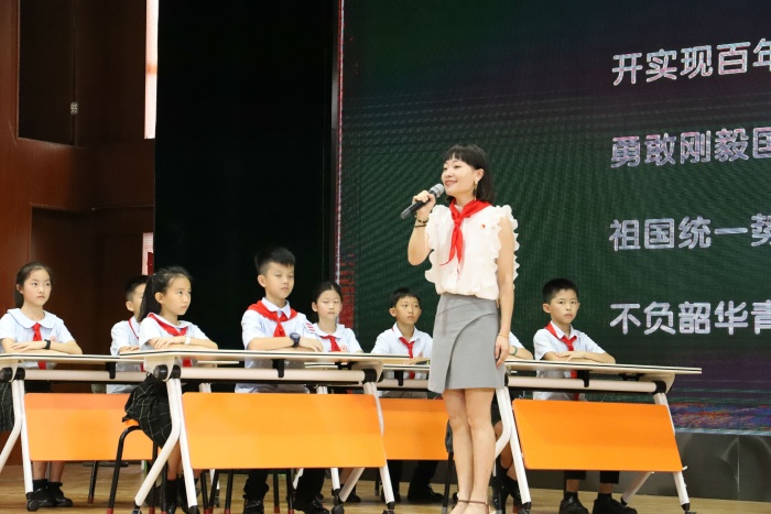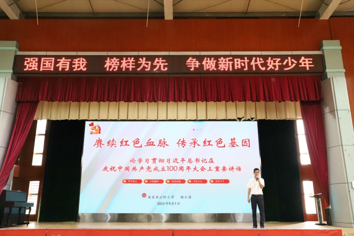 為了讓少先隊(duì)員和預(yù)備隊(duì)員扣好人生第一??圩樱渣h建帶團(tuán)建、團(tuán)建帶隊(duì)建,學(xué)校黨支部書記、校長(zhǎng)林小舟給全體師生上了第一節(jié)思政課。通過回顧百年黨史,從在中國(guó)共產(chǎn)黨領(lǐng)導(dǎo)下,黨和國(guó)家實(shí)現(xiàn)第一個(gè)百年奮斗目標(biāo)的偉大光榮出發(fā),細(xì)數(shù)百年奮斗的偉大成就,激發(fā)學(xué)生愛黨、愛國(guó)、愛社會(huì)主義的熱情。同時(shí)立足實(shí)際,展望未來(lái),讓學(xué)生明白自己既是實(shí)現(xiàn)第一個(gè)百年奮斗目標(biāo)的經(jīng)歷者、見證者,更是實(shí)現(xiàn)第二個(gè)百年奮斗目標(biāo)、建設(shè)社會(huì)主義現(xiàn)代化強(qiáng)國(guó)的生力軍,從而主動(dòng)擔(dān)起歷史使命,為中華民族的偉大復(fù)興夢(mèng)貢獻(xiàn)力量,以實(shí)際行動(dòng)爭(zhēng)做新時(shí)代的好少年。在思政課結(jié)束前還對(duì)全體師生提出了新學(xué)年在疫情防控和五項(xiàng)管理方面的具體要求。