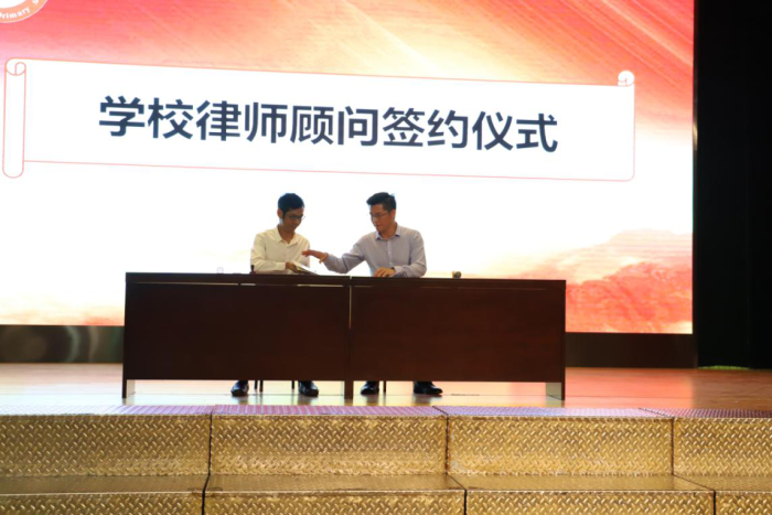 為了讓學(xué)校的法制工作開展得更加順暢,學(xué)校聘請東區(qū)起灣派出所警員李木生為學(xué)校法制輔導(dǎo)員,聘請東區(qū)起灣派出所副所長羅勇彬為學(xué)校法制副校長,林校長為他們頒發(fā)了聘書。同時,學(xué)校還聘請了廣東凱行律師事務(wù)所朱志強(qiáng)律師為學(xué)校專業(yè)的律師顧問,并進(jìn)行了簽約。