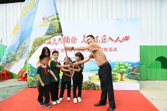 10月17日上午,東區水云軒小學二(8)中隊20組親子家庭參加由東區河長辦主辦,東區文明辦、東區志愿者協會、齊富灣社區共同協辦的 “碧水藍天共描繪,美麗東區入人心”沿岸美化志愿服務活動?;顒釉诎咨碁彻I明渠沿岸開展。活動開始,由中山市東區黨工委副書記黃沛華為本次活動致辭,中山市河長辦四級調研員張志明向學生代表授旗,并共同簽下“愛河護河,我們齊行動”東區水環境保護倡議書。此次活動共分為兩大部分,第一部分是用手描繪心中美景,軒小志愿者們一起揮起手中的畫筆,共同描繪美麗東區,裝點河渠兩岸;第二部分是認真學習護河知識和巡河。社區級河長、齊富灣社區黨委書記唐宇麟分別就河涌環境治理知識以及巡河時的安全問題給孩子們進行講解。講解結束后,在社區級河長的帶領下,小河長們在白沙灣工業明渠沿岸開始了第一次的巡河活動,并就岸邊的垃圾進行回收以及分類,讓隊員們不只是停留在學習環保知識的層面上,而是身體力行地去做好環保,進一步提升自身環保意識。