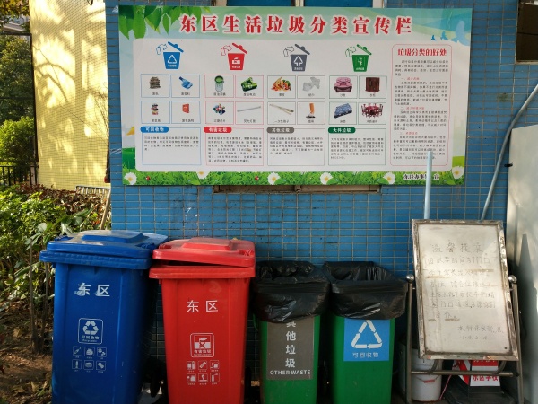 為了使垃圾分類工作落到實處,實現校園生活垃圾分類全覆蓋。東區水云軒小學的校園內添置了多組標志清晰的垃圾分類回收箱,并根據不同需要放置在校園走道、班級教室和教師辦公室,指引學校師生正確分類投放垃圾,對可回收物、有害垃圾、其他垃圾分三類進行回收。此外,特殊時期為保障師生生命健康,學校在教學樓的每個樓層設置了專門收集廢棄口罩的垃圾箱,對廢棄口罩進行集中科學處理。在復學第一天,學校就通過釘釘直播科學防疫衛生健康課程,教導學生們正確處理和回收廢棄的醫用口罩,將垃圾分類回收落實到學校常規工作中。
