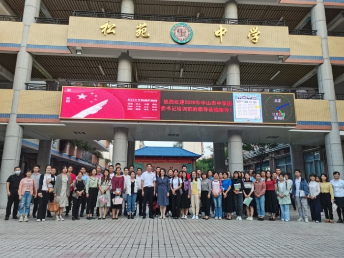 11月5日,在團市委學校部部長李昀蔚率領下,中山市2020年中學團委書記培訓班的50多名團委書記來東區松苑中學,進行團建工作考察指導,實地了解東區松苑中學在中學團校建設、特色社團活動開展、學生志愿服務等方面工作探索與成效。周紅校長、黃志創副校長全程陪同。
