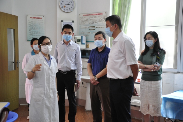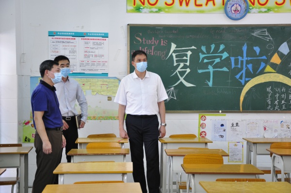 周俊峰查看了校門口體溫檢測設(shè)備和學生緩沖區(qū)的設(shè)置情況,詢問了校醫(yī)室和觀察區(qū)的使用情況,檢查了布置溫馨的教室,聽取了校長陳侃對疫情防控期第二批返校復學工作的安排。周俊峰充分肯定了學校疫情防控期第二批返校復學的相關(guān)舉措。