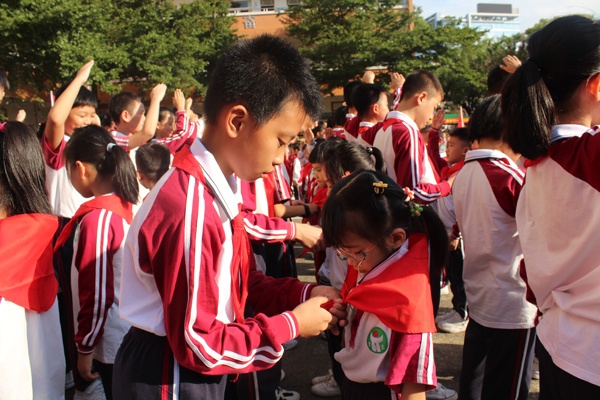 10月15日上午,團益學校的操場上,隊旗飄揚,隊歌嘹亮。為慶祝中國少先先鋒第71個建隊日,增強學校少先隊組織的光榮感、使命感和責任感,教育學生繼承和發揚中國少年先鋒隊的優良傳統,培養學生積極進取、健康向上的精神,促進學校紅領巾教育事業的蓬勃發展。團益學校舉行了二年級第二批新隊員入隊儀式。