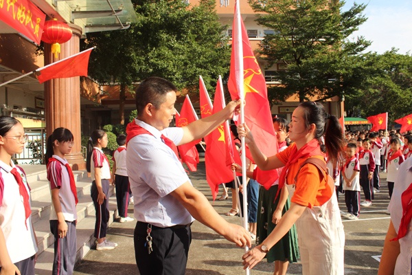 最后,由大隊輔導員劉丹老師的帶領全體隊員呼號: “時刻準備著……”一字一句鏗鏘有力,充分顯示了作為社會主義事業接班人的信心和決心。