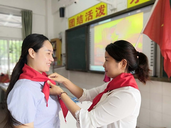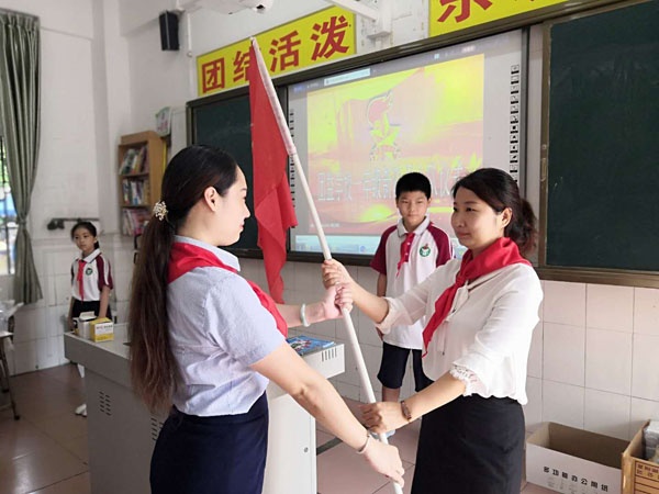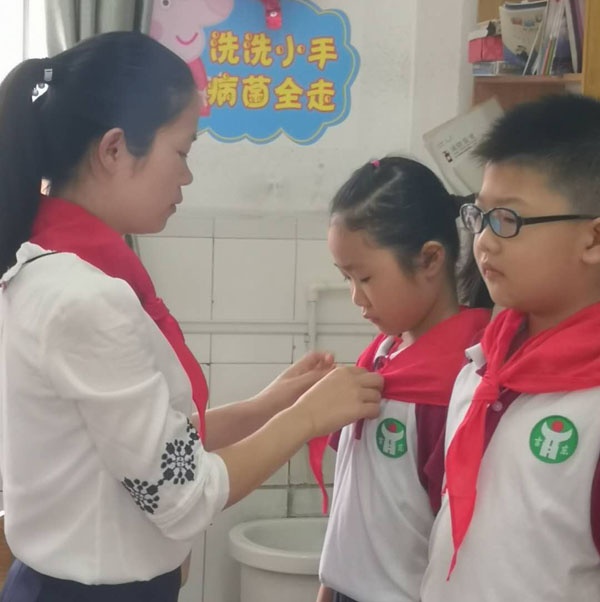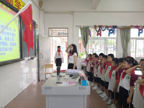在動聽的隊歌聲中,簡單而莊嚴的入隊儀式開始了,新隊員們昂首挺胸,敬隊禮,唱隊歌,在隊旗下莊嚴宣誓……。雖然時值疫情期間,沒有隆重的集會,但滿滿的儀式感一點也不能少,領巾飄,心向黨。通過此次活動,壯大了少先隊的隊伍,每位隊員都懂得了自己所肩負的光榮使命,他們定會牢記黨的教誨,全面發展,做一名優秀的新時代好少年!
