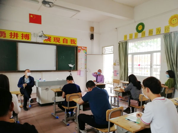 德育主任戴勇波要求老師們要隨時關注學生的心理健康,做好心理疏導,每天做好消毒及記錄,強調含氯消毒液的正確使用,做到每天測量體溫三次,班主任做好晨檢和午檢記錄,強調午餐注意事項及操作流程,提醒師生做好健康卡電子簽名和上交粵康綠碼;提醒門口值日老師正確使用測溫槍,測溫槍不能與學生皮膚接觸,所有流程要嚴格按照之前的演練流程進行操作。